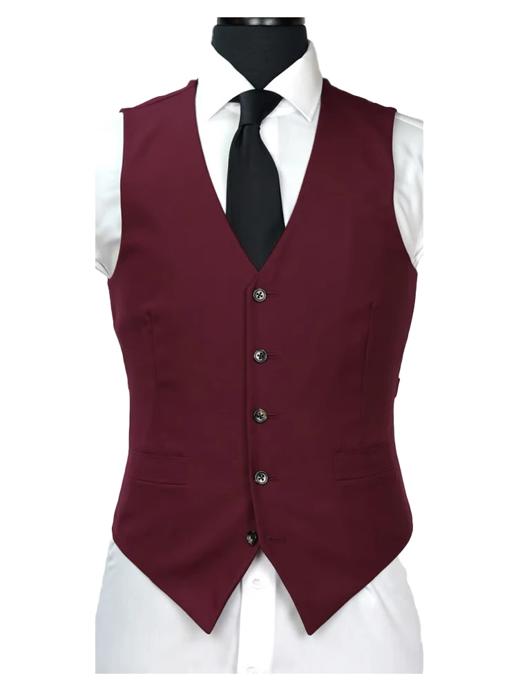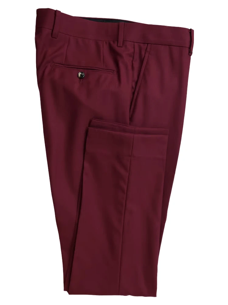 • This high-quality cherry red fabric is ideal for anyone wanting to stand out in a crowd. Because of its beautiful quality, the drape on the suit makes a custom fit look elegant and stylish at the same time. It’s a beautiful choice for anyone looking to stand out. We love this suit as a three-piece.