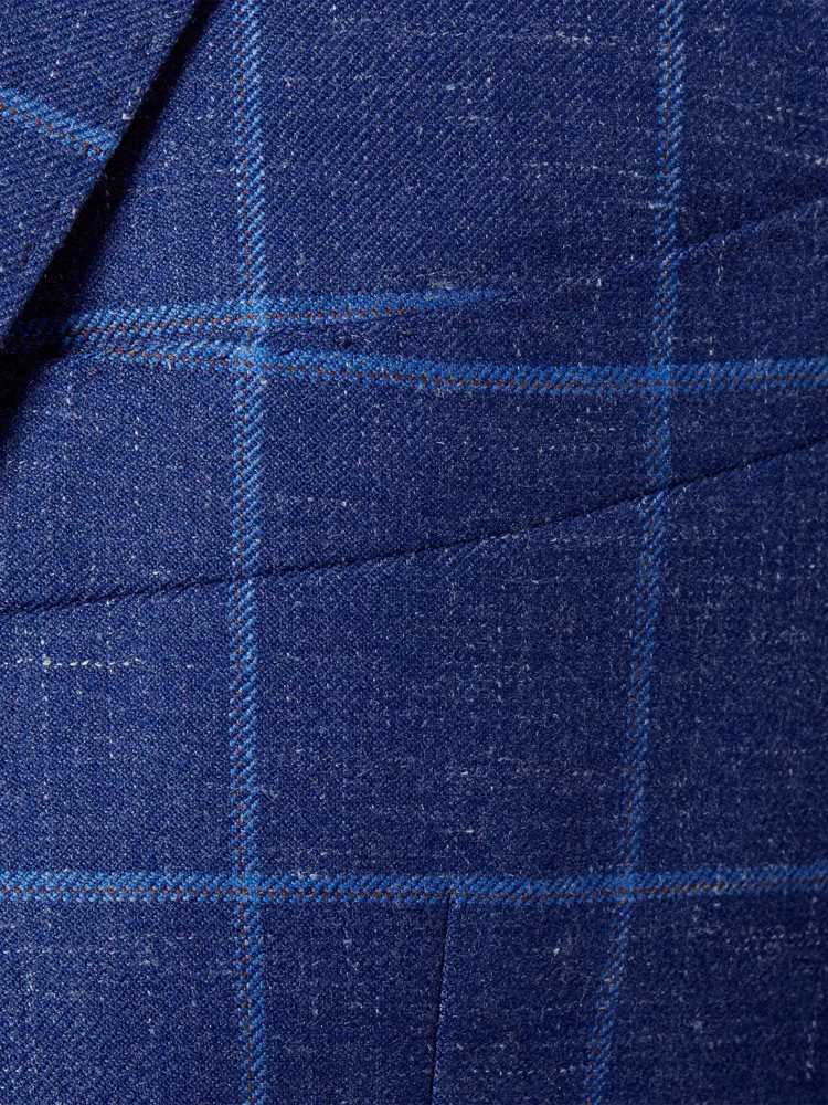 Gorgeous Tailor Made Two Piece Notch Lapel Single Breasted Navy Blue Windowpane Wool Mix Business Wedding and Prom Suit