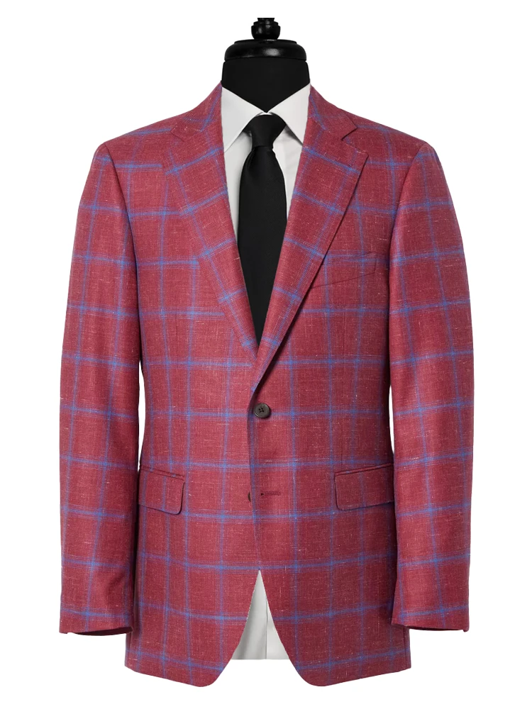 + Free ShippingProduct Name | Tailor Made Two Piece Watermelon Windowpane Wool Mix Business Wedding and Prom Suit |
