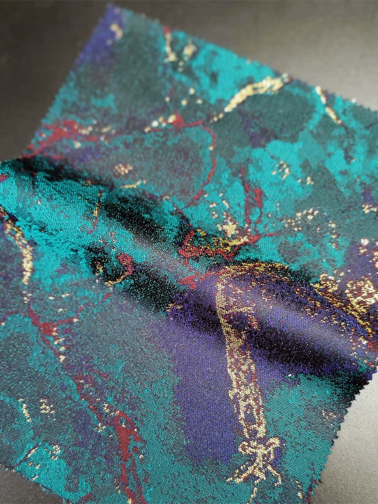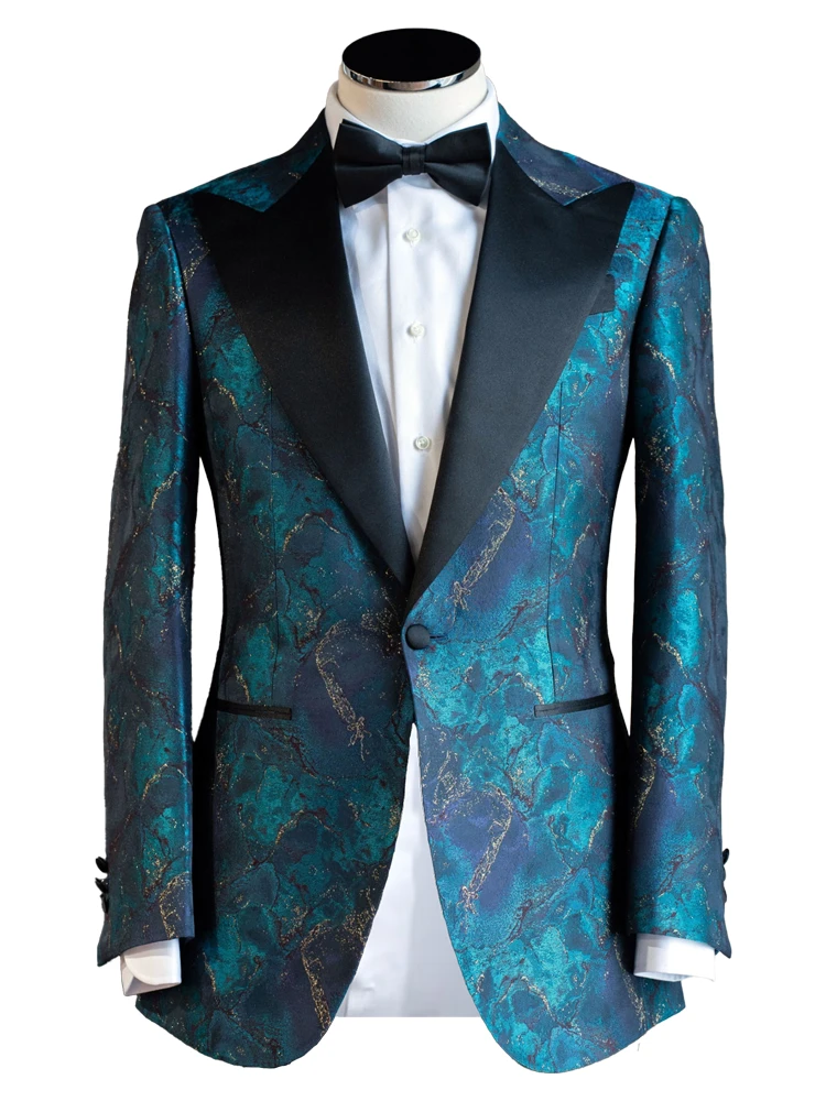 Handsome Custom Made Two Piece Peak Lapel Single Breasted Turquoise and Golden Stone Pattern Jacquard Wedding and Prom Tuxedo