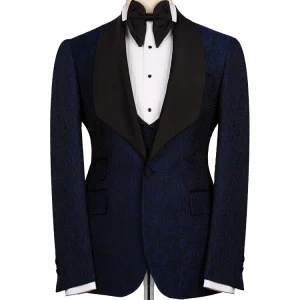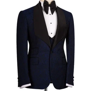 Navy Blue Jacquard Slim Fit Shawl Lapel Wedding Suits