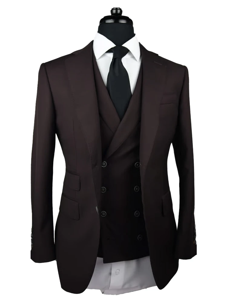 New Arrival Custom Made Classic Casual Three Piece Notch Lapel Single Breasted Brown Business and Prom Men Suit