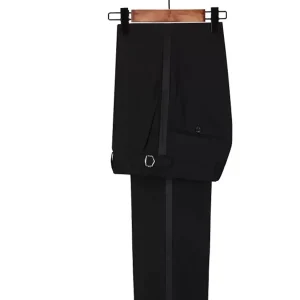 • Jacket: Black Satin Shawl Lapel; Single Breasted One Button Closure; Satin Welted Chest Pocket; 2 Satin Jetted Front Pockets; Double Vents; Full Lining. Trouser: Flat front; Belt Loops; 2 Jetted Hip Pockets; 2 Slant Front Pockets; Satin Side Stripe; Zip Closure. Vest: Satin Black Shawl Lapel; Double Breasted 10 Button Closure; 2 Besom Front Pockets.
