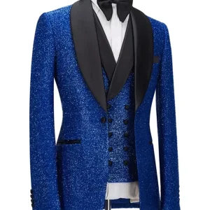 + Free Shipping| Product Name | Royal Blue Sparkle Three Piece One Button Fashion Slim Fit Mens Suit |