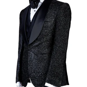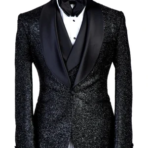 Sparkle Black Three Pieces Shawl Lapel Bespoke Wedding Suit