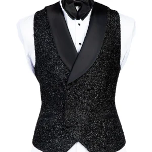 + Free Shipping| Product Name | Sparkly Black Three Pieces Shawl Lapel Bespoke Wedding Suit |