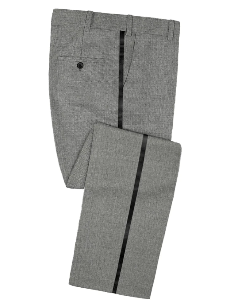 • Showcase your verve for sartorial substance with our Napolean Flat Gray Wool Tuxedo Suit, this suit will add a casually refined sophistication to your everyday ensembles. Crafted from 90% wool and 10% micro rayon, the tuxedo provides a great way to present your personality and still look ultra-chic at any events you may attend.