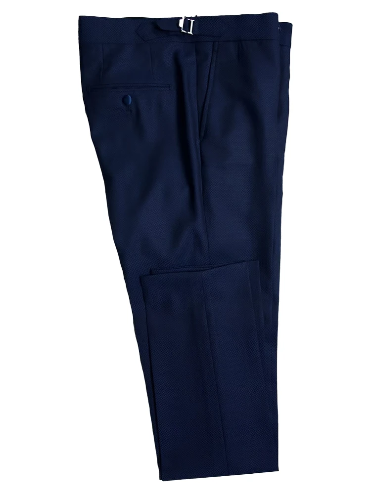 • This classic birdseye texture is what makes this suit so gorgeous. Far from being a boring blue fabric, the work on this fabric is just gorgeous. It’s not the lightest of fabrics but has the weight to give any tux a crisp structure.