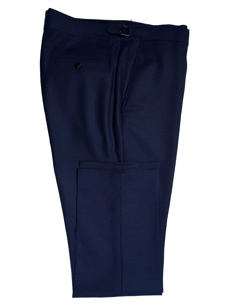 • Classic blue – but with a twist. This classic birdseye texture is what makes this suit so gorgeous. Far from being a boring blue fabric, the work on this fabric is just gorgeous. It’s not the lightest of fabrics but has the weight to give any tux a crisp structure. We love the contrast it creates with a black satin lapel.
