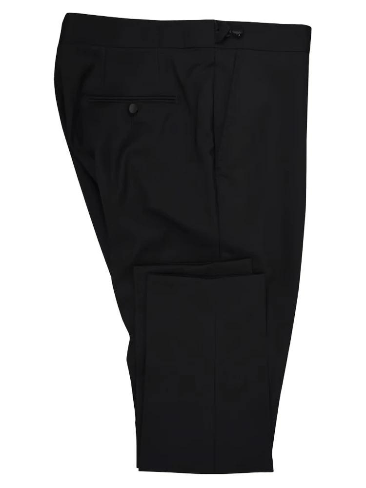 • Our solid black custom tuxedo makes every occasion a special occasion for you. We absolutely love the stretch and subtle shine of this wool that gives it a premium drape.