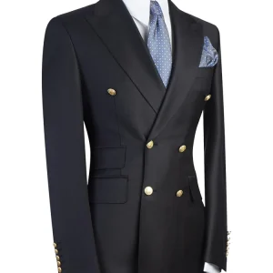 Stylish Black Peak Lapel Double Breasted Gold Button Wedding Suit