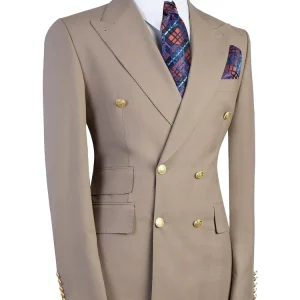 Stylish Brown Peak Lapel Double Breasted Gold Button Suit