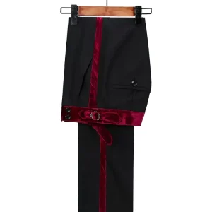 • Jacket: Wide Velvet Shawl Lapel; Jacquard Paisley Pattern; Single Breasted One Button Closure; Welted Chest Pocket, 2 Satin Velvet Satin Jetted Front Pockets; Double Vents; Full Lining; Pants: Flat Front; Two Button Extended Tabs and Side Adjusters; 2 Slant Front Pockets; 2 Jetted Back Pockets; Zipper Fly; Velvet Satin Stripe. Vest: No Lapel; Double Breasted 8 Buttons Closure; 2 Besom Pockets.