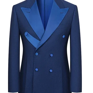 + Free Shipping| Product Name | Stylish Navy Blue 2 Piece Double Breasted Peaked Lapel Men Suits |