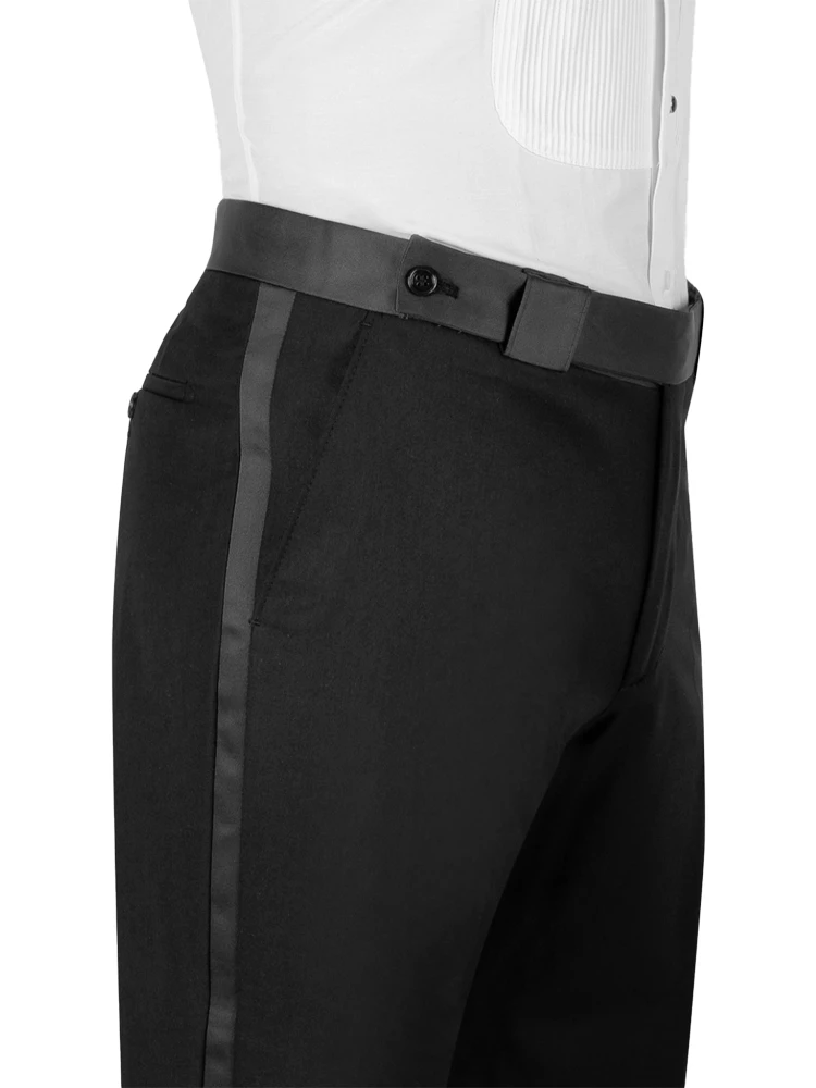 • Jacket: Satin Shawl Lapel; Single Breasted One Button Closure; Welted Chest Pocket; 2 Straight Jetted Front Pocket; Double Vents; Full Lining. Pants: Flat Front; Belt Loops; 2 Side Slant pockets, 2 Jetted Back Pockets(Hip Pocket); Satin Side Stripe; Zipper Fly. Vest: No Lapel; Single Breasted 4 Button Closure; 2 Besom Front Pockets.