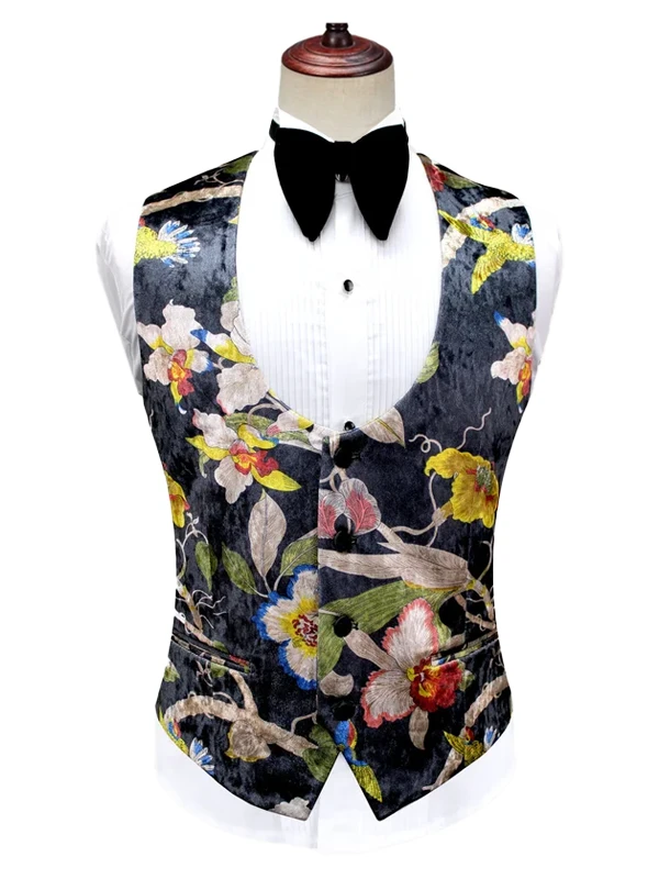 • Suppose you like to wear clothing with multi colors. In that case, this orchid velvet floral tuxedo will suit your tastes to the T! Make your next wedding event, prom night, homecoming dance, or any formal gathering one to remember when you wear this floral tuxedo. Featuring an eye-catching display of orchids in vibrant and exciting shades adorning the jacket, with tiny hummingbirds peeking through the foliage – the effect is just like a beautiful yet peaceful forest! The pattern looks amazing, and the velvet fabric is soft and smooth to the touch, giving the outfit an elegant aura. The shawl lapel is a stellar finish touch to the jacket.