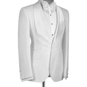 White Jacquard Slim Fit Shawl Lapel Wedding Suits