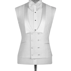+ Free Shipping| Product Name | White Jacquard Slim Fit Shawl Lapel Wedding Suits |