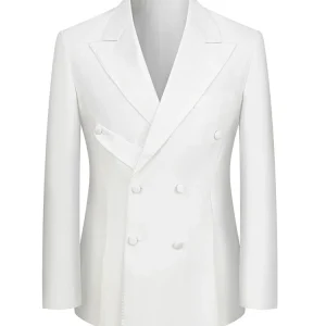 White Two Piece Double Breasted Peak Lapel Prom Man Suit