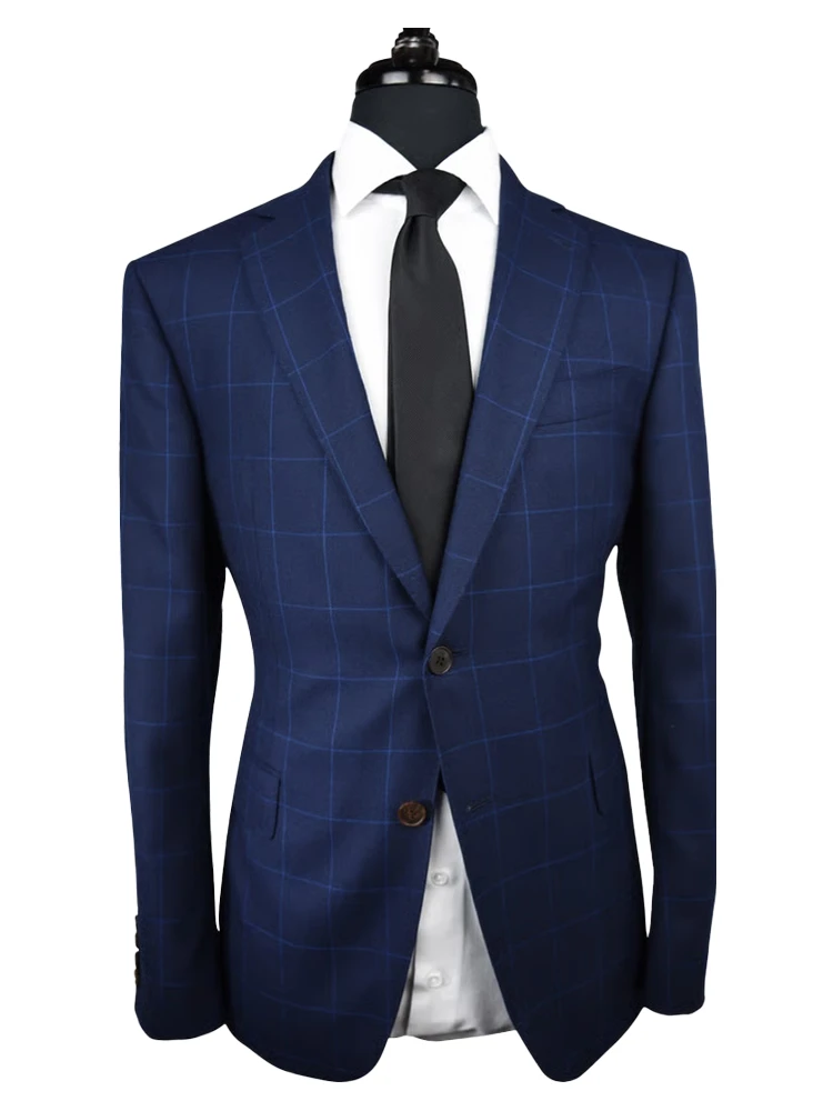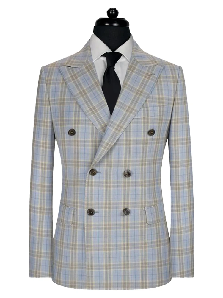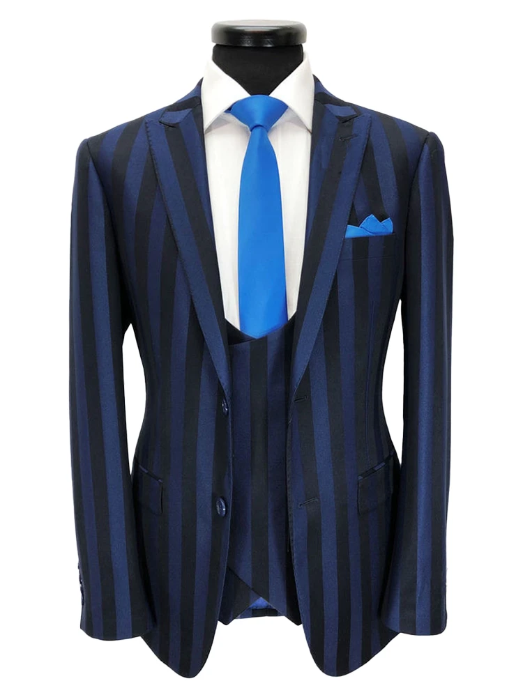 Stylish Navy Blue 2 Piece Double Breasted Peaked Lapel Men Suits