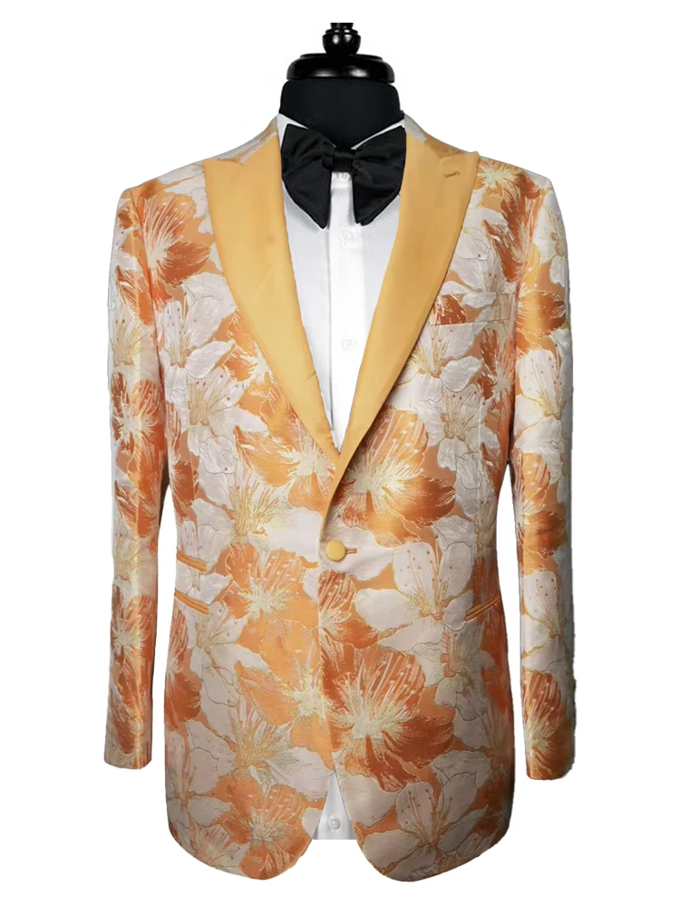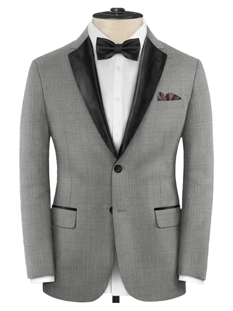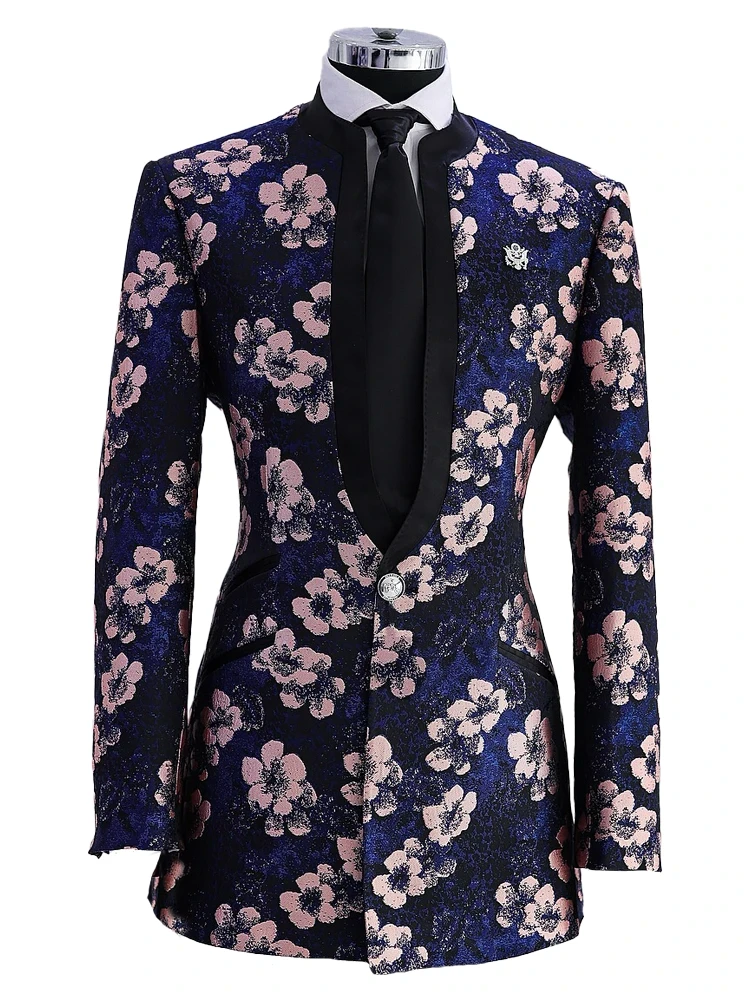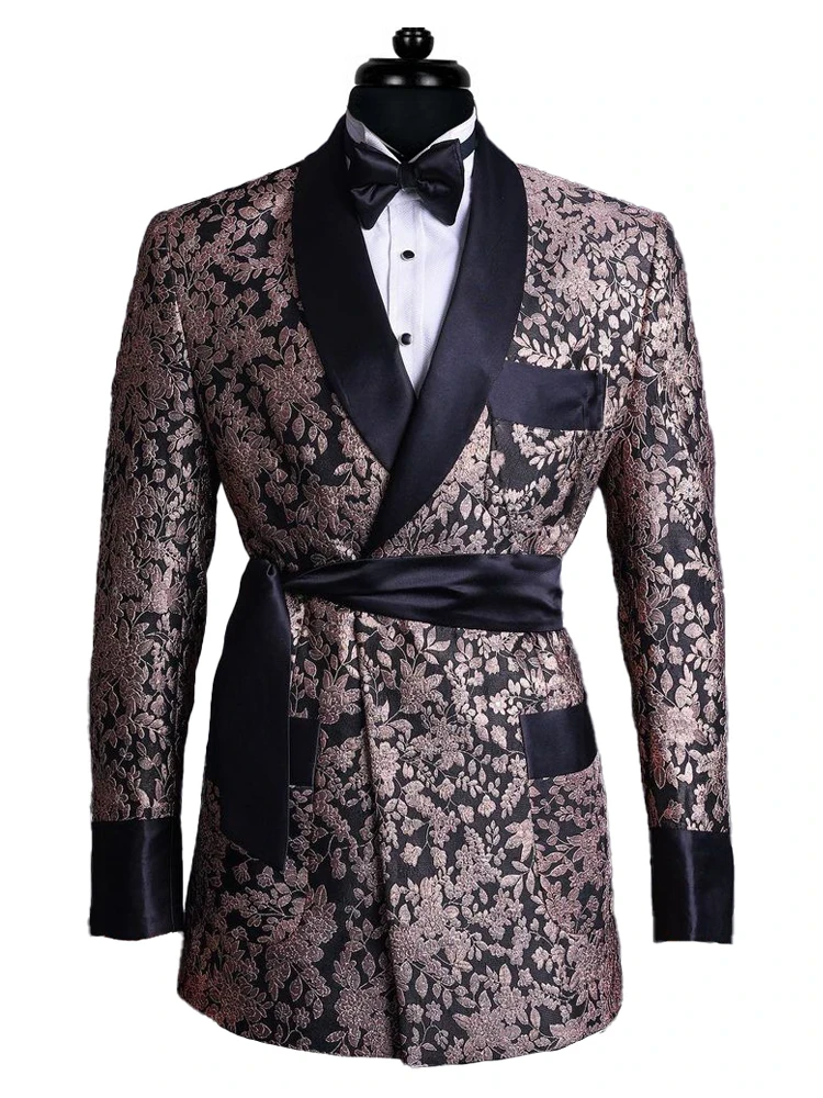 Gentle Black Satin Lapel Jacquard Pink Prom Suit Wedding