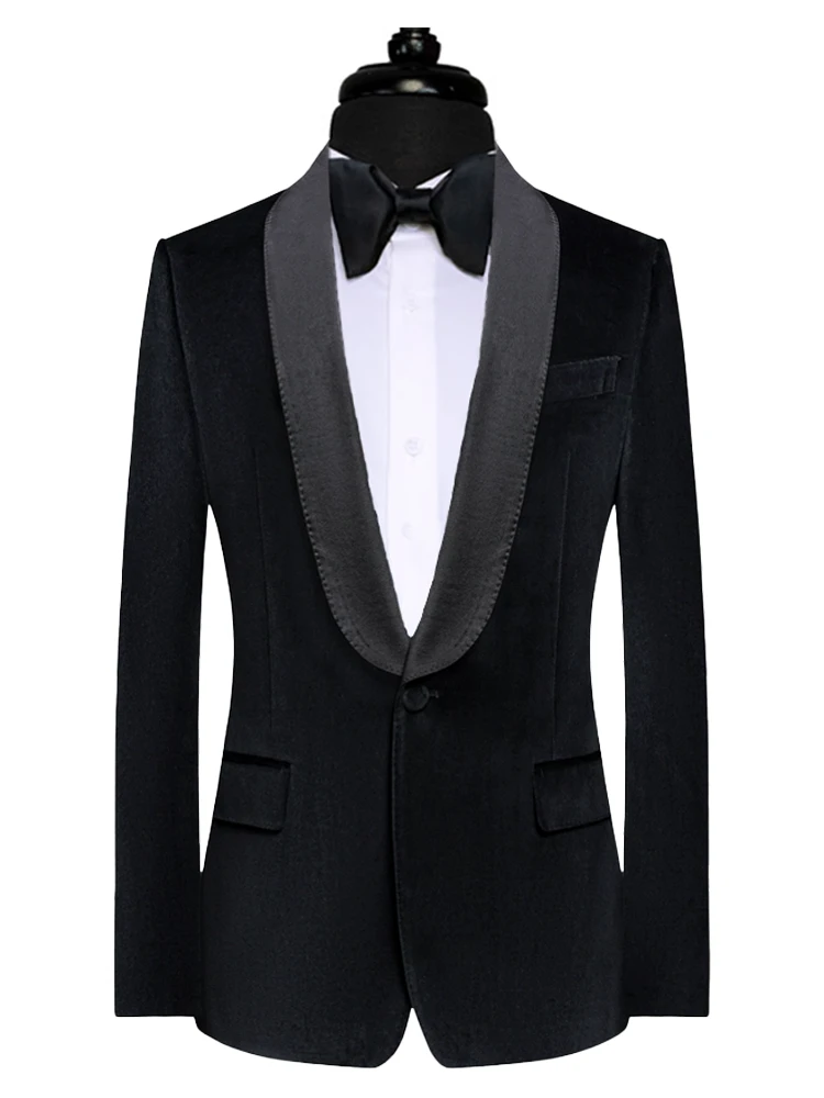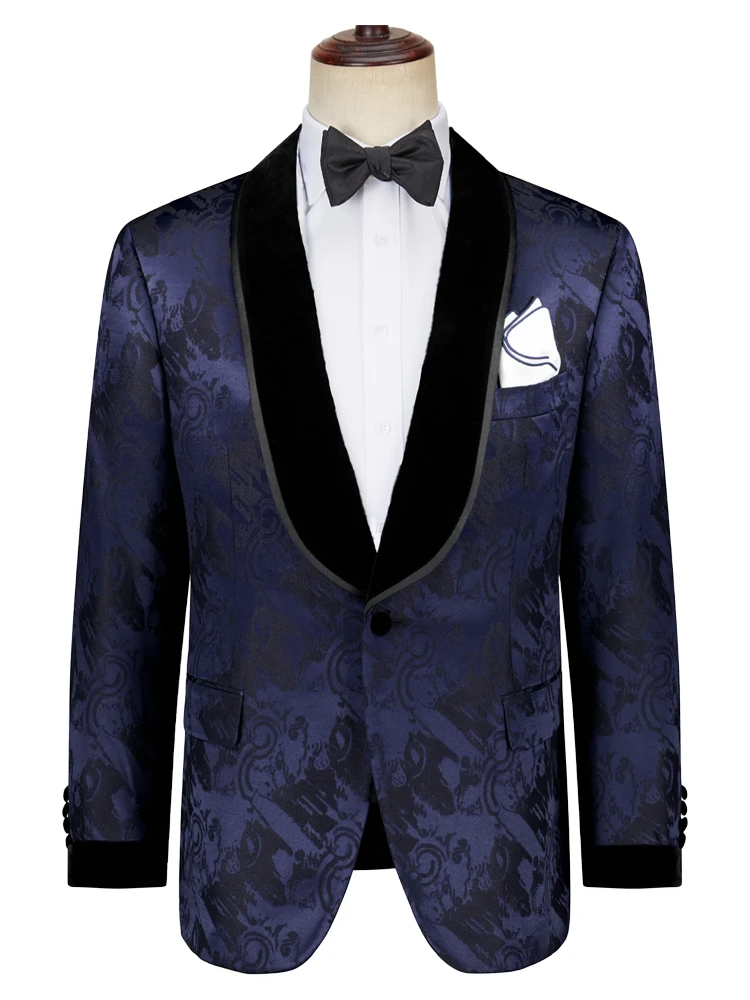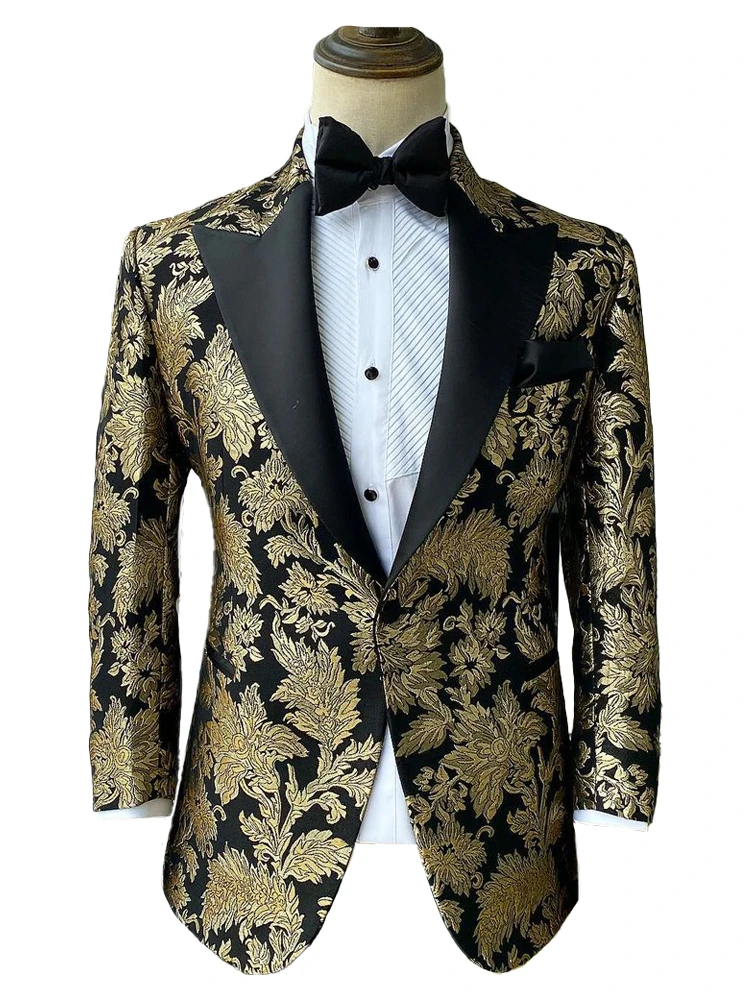 Black 2 Pieces Prom Suits Jacquard Tuxedo with One Button