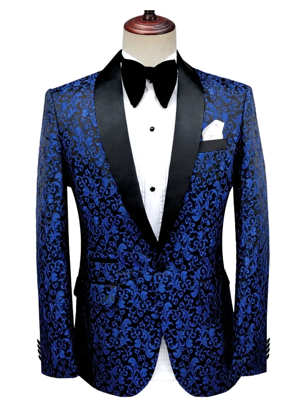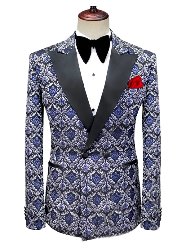 Black 2 Pieces Prom Suits Jacquard Tuxedo with One Button