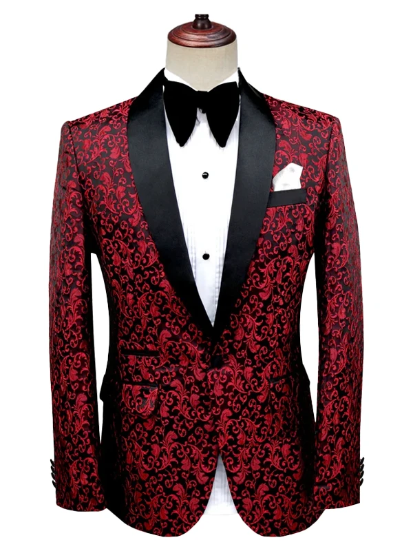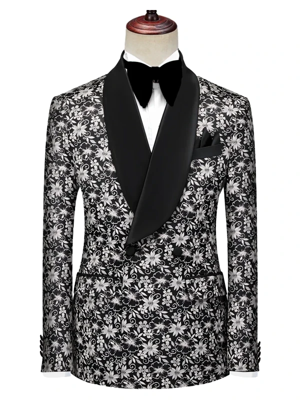 Gentle Black Satin Lapel Jacquard Pink Prom Suit Wedding