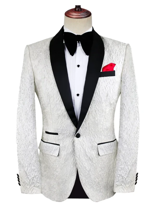 White Jacquard Shawl Lapel 3 Pieces Prom Men's Suits