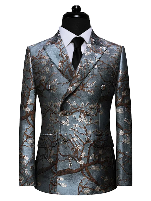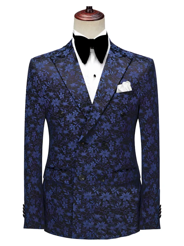 Stylish Navy Blue 2 Piece Double Breasted Peaked Lapel Men Suits
