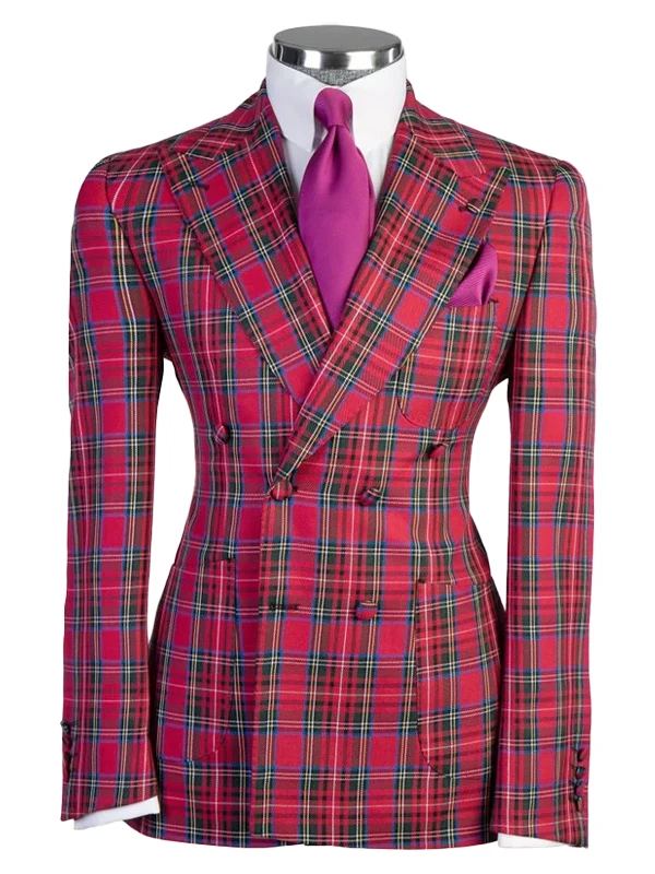 Stylish Pink 2 Piece Double Breasted Peaked Lapel Men Suits
